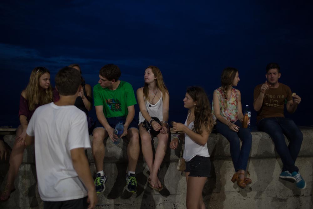 Students people watching and making friends on El Malecón, Havana's iconic seawall . | Photo by Trip Leader James Bernal