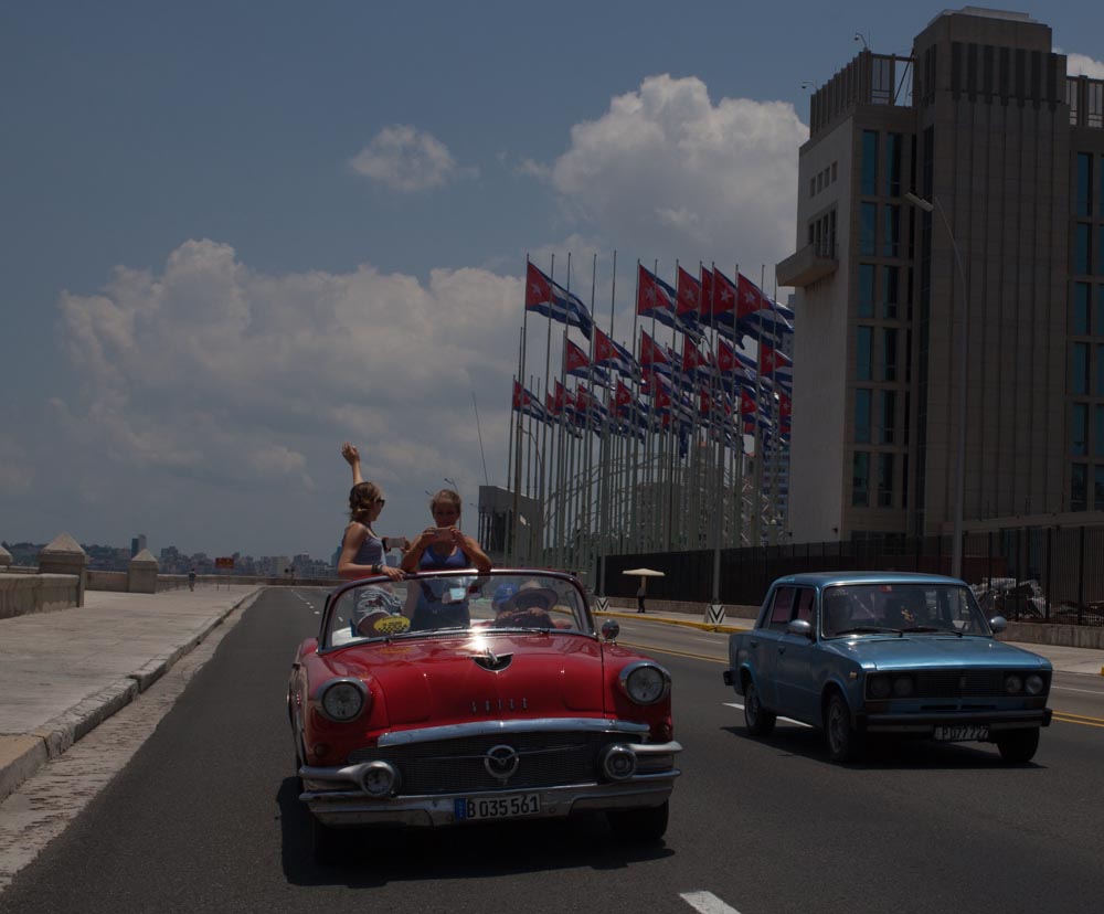 Getting a lift home in some classic American cars, lovingly referred to in Cuba as Yank Tanks. | Photo by Trip Leader James Bernal