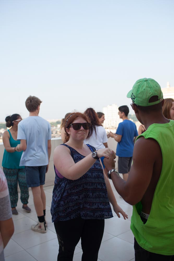 Students taking part in a lesson on Cuban Salsa on the terrace of Hotel Plaza. | Photo by Trip Leader James Bernal