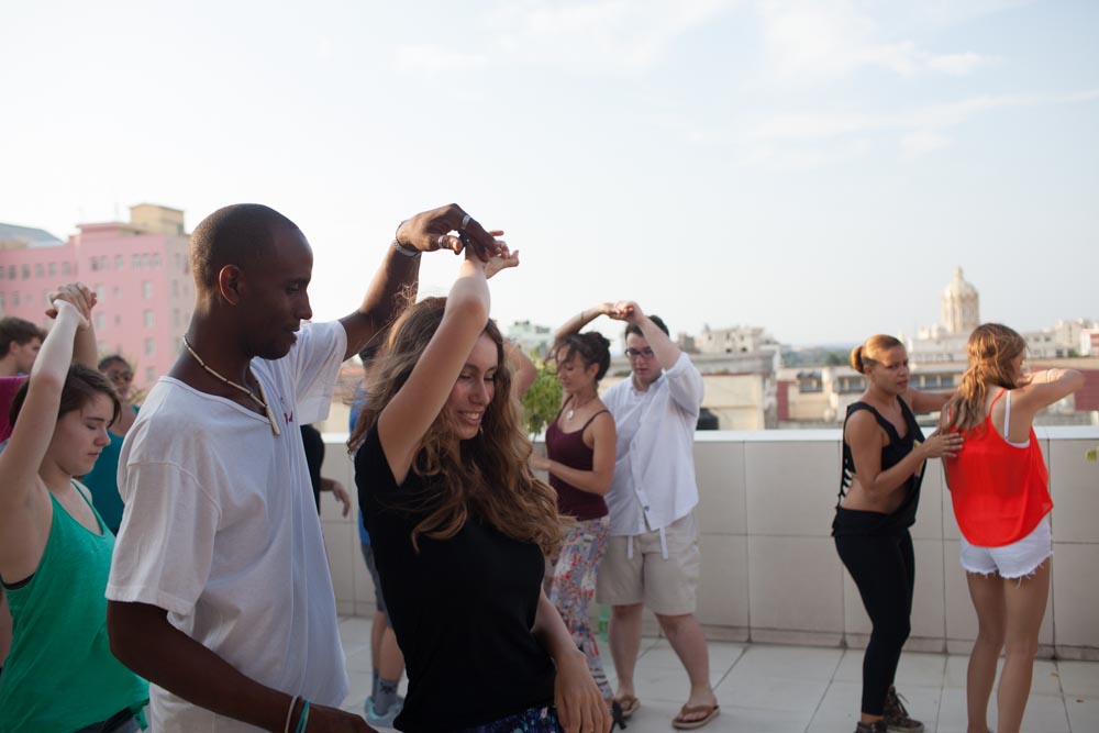 Students taking a lesson on Cuban Salsa on the terrace of Hotel Plaza. | Photo by Trip Leader James Bernal